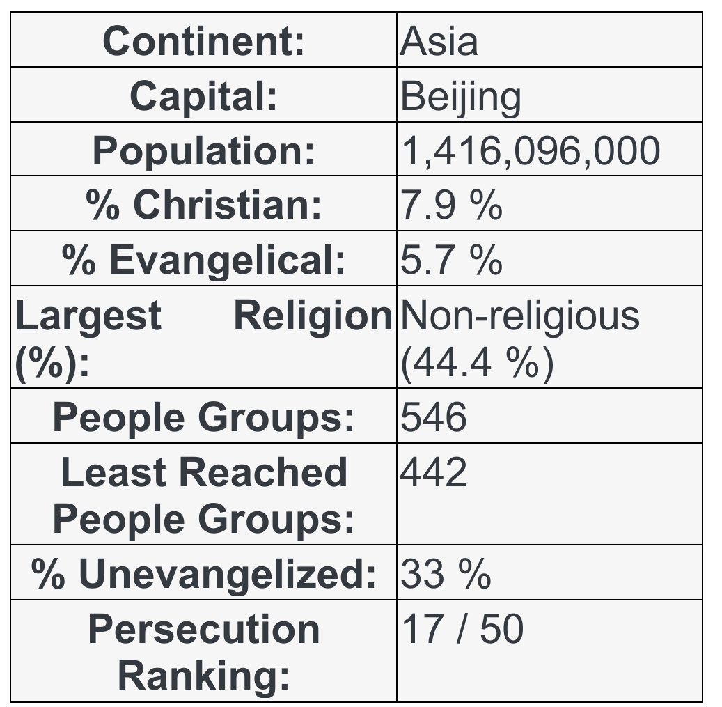 PRAYING FOR PEOPLE’S REPUBLIC OF CHINA